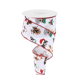 We "woof" you a Merry Christmas! Celebrate the holiday season by decorating with this jolly Christmas dogs on faux royal burlap ribbon! Featuring a red metallic wired edge, as well as festive dogs of many different breeds atop a white base, this ribbon will be an exciting addition to any Christmas-themed display you choose!