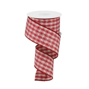 Use this marvelous fuzzy multi check ribbon in any display you see fit! This ribbon features a sewn wired edge, along with a detailed dark red and beige multi check pattern, making it an adaptable addition to any decorative piece of your choosing.