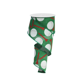 It's tee time! And the time has also come to use this golf balls/royal ribbon in a creative display! This wired edge ribbon features a collection of golf balls and tees throughout, allowing it to fit perfectly in a sports-inspired wreath display! Finish your wreath with some matching mesh, sprays and picks, or even a decorative sign!