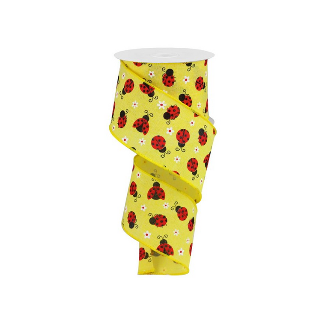 Pay tribute to your favorite insect friends when your decorate with this lovely mini ladybugs on royal burlap ribbon! This ribbon features a wired edge, plus a collection of ladybugs crawling atop a yellow base! Use this ribbon in designing your own custom wreath, and let it take on a Spring theme!