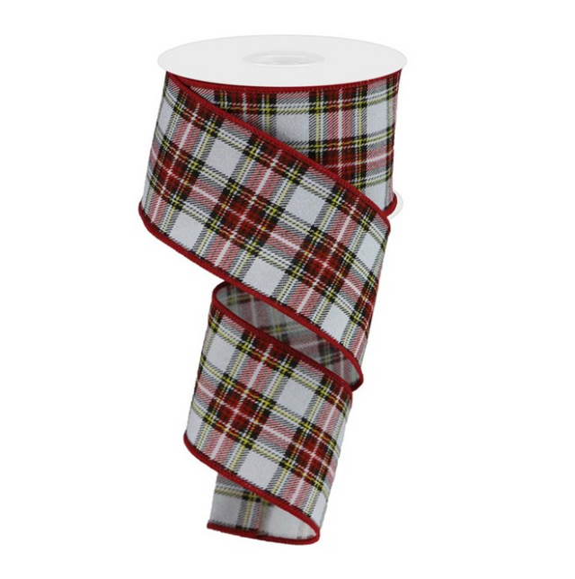 Add this versatile printed plaid look/fuzzy royal ribbon to any display you see fit! This ribbon features a sewn wired edge, along with a striking black, dark green, red, yellow and white plaid pattern, making it an adaptable addition to any decorative piece of your choosing.