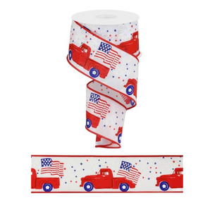 Patriotic red truck ribbon with American flag. Perfect for all things patriotic!