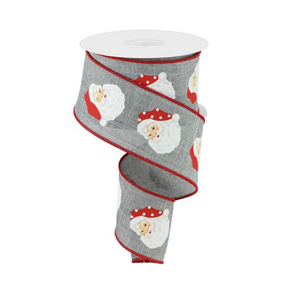 Wrap this jolly vertical Santa heads/royal burlap ribbon around your next Christmas display to set it over the top! This wired edge ribbon features a number of Santa heads against a grey base, making it an easy to match addition to any Christmas display! Consider using this ribbon in a wreath, or on the Christmas tree itself!
