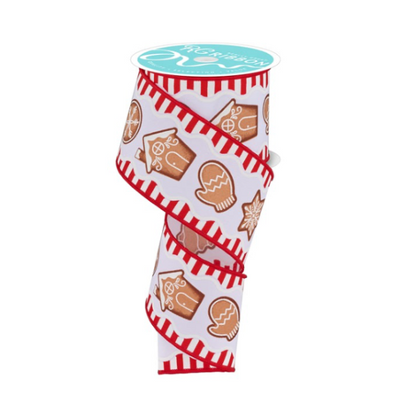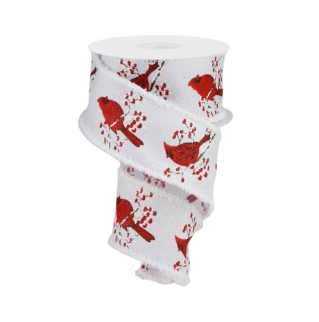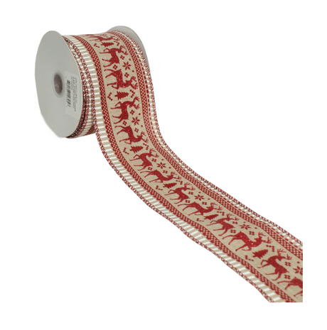 2 1/2" Reindeer Wired Ribbon (Natural/Red) 10 Yard Roll