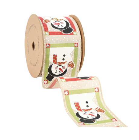 2 1/2" Snowman Wired Ribbon (Natural/Multi) 10 Yard Roll