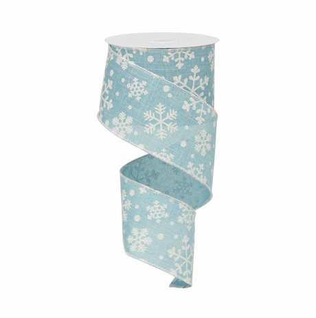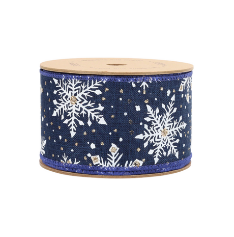 2 1/2" Snowflake Wired Ribbon (Blue/White) 10 Yard Roll