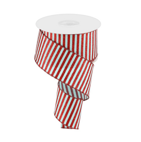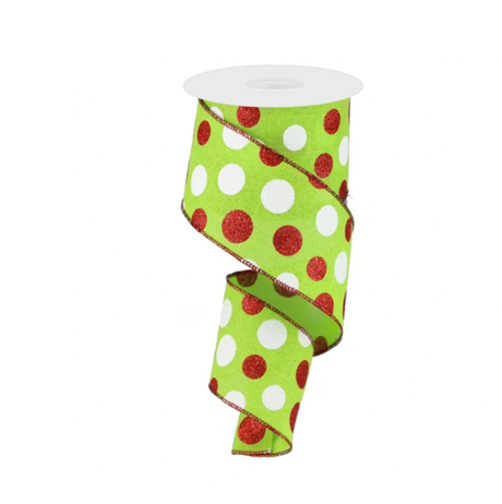 2 1/2" Flocked Glitter Wired Ribbon (Red/Multi) 10 Yard Roll