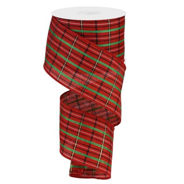 Add this versatile and stylish plaid ribbon to any display you see fit! It's wired edge and red, green, black, white and gold plaid pattern make it an adaptable addition to any decorative piece of your choosing.