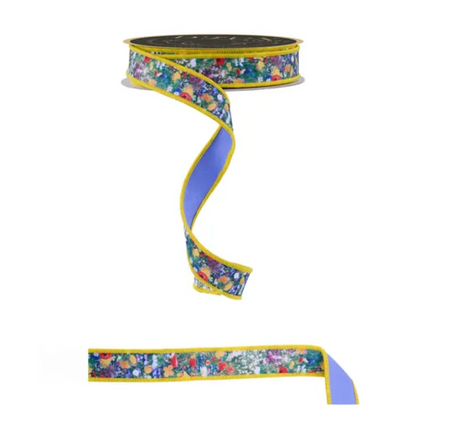 7/8" x 10yd Raised Swiss Dots On Royal (Yellow/White)