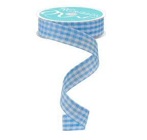7/8" x 10yd Gingham Check (Light Blue/White)