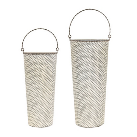 White Washed Basketweave Metal Half Wall Baskets (Set of 2)