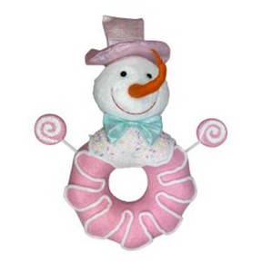 This adorable 18" snowman donut features pastel pink and blue colors, adding a charming touch to your seasonal décor. Perfect for brightening up any space with a playful, sweet vibe.
