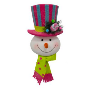 Brighten your winter décor with this 20" Snowman Head, featuring cheerful hues of pink, blue, and lime green. Perfect for adding a playful pop of color to your holiday setup.