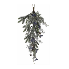 Hang this lovely dusty blue berry/cedar teardrop to bring a shining touch to any display! This teardrop features clusters of blue berries, cedar stems, needles and fuzzy bits throughout, giving it some serious visual depth! This teardrop will look stunning when hung near some lights, or lanterns, as well as decorated with some enhancements! Add some floral sprays, bushes or picks to send this teardrop over the top!