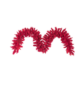 Vickerman 9' x 14" Flocked Red Fir Artificial Christmas Garland with 210 PVC Tips. Incorporate bright and modern holiday décor into your space with this beautifully flocked garland. A great accent for your Christmas tree, stair railings or mantle, this garland comes Unlit, features traditional PVC tips, giving a lush, full look, and can be customized with your favorite lights, ornaments, ribbons, or Holiday picks. The flexible wired spine makes sure that this garland will meet all of your decorating needs.