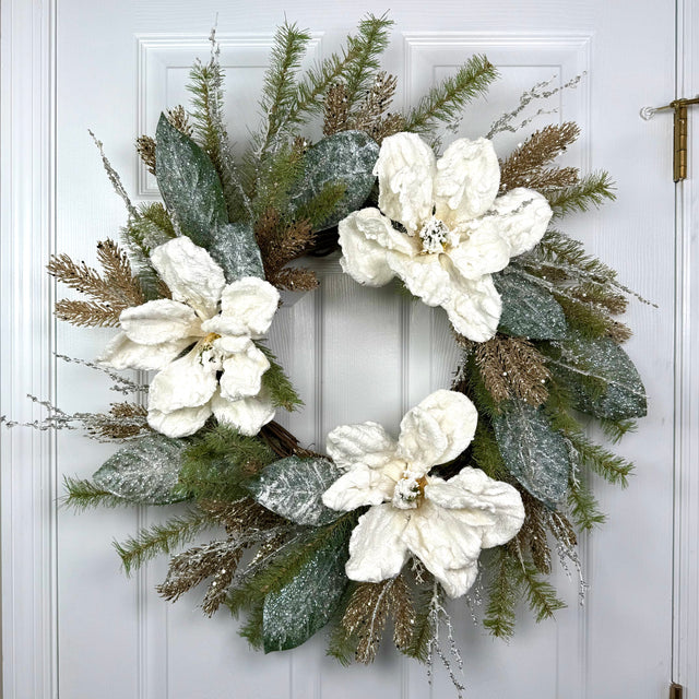 Snowy Glitter Magnolia Wreath is backordered and will ship as soon as it is back in stock.