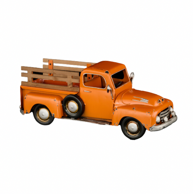 Bring back the flavor of yesteryear with this finely crafted and detailed metal truck planter! The details on this truck with moving wheels, flatbed with a wood fence, and old fashioned headlights, mirrors and running board are impeccable! Also included with this truck is a liner for your plants or flowers! This replica of the truck is so realistic that you might be tempted to turn on the lights, honk the horn then drive away!