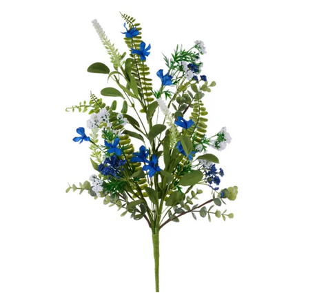 27"L Flower/Spike/Fern/Leaf/Bead Spray (Navy/White)