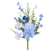 This vibrant 19" floral spray is a stunning mix of textures and blooms, perfect for adding a touch of nature to any setting. The spray features a large ranunculus and a beautiful rose, complemented by four delicate hydrangea blossoms. It also includes an array of smaller blooms, including two large and seven small fabric flowers, two clusters of charming powdered flowers, and two sprays of lavender. The arrangement is further enhanced by two lush fern fronds, a cluster of eucalyptus, and realistic fabric leaves and EVA grass for a full and natural look.