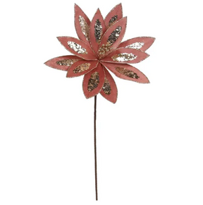 21"L Velvet/Sequin Poinsettia Stem (Rose Gold) is backordered and will ship as soon as it is back in stock.