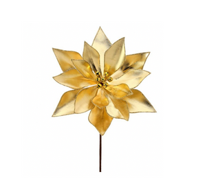 24" Retro Poinsettia Stem W/Jingle Bells (Gold)