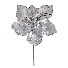 24" Shiny Poinsettia Stem (Silver) is backordered and will ship as soon as it is back in stock.