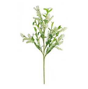 Enhance your spray display with this tasteful mini bead spike flower spray! The vivid green branches of this spray meet the spike flowers in an eye-catching floral display that is sure to turn heads! Use this spray in a hanging planter to give your display a reclaimed look; also consider adding it to a stacked planter display!