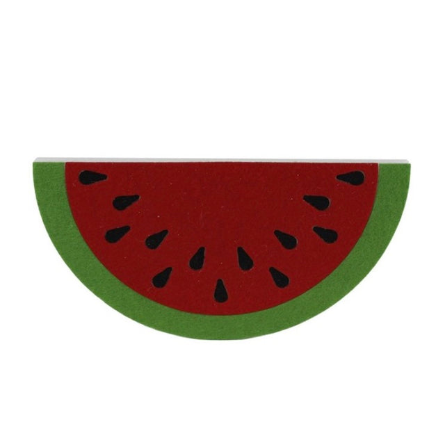 Juice up your wreath display with this eye-catching watermelon slice! Featuring a foam construction and dotted with black seeds, this watermelon is a dynamic decorative piece for fruit lovers of any sort! Try pairing this watermelon with a wreath display fit for the garden; include some ribbon and mesh, along with some decorative sprays to tie the theme together!