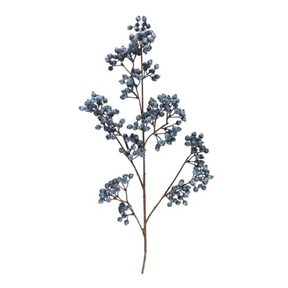 Use this charming berry branch in a floral arrangement to give a nice pop of color! This branch features bunches of blue berries throughout, making it instantly recognizable even among other plants! Add this branch to a hanging planter, decorative vase or a pot to give it a fitting home! Consider also adding this branch to some angelvine garland for a rustic look!