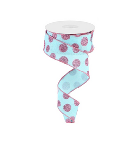 Get wrapped up in decorating with the best, once you use this glitter polka dots on royal burlap ribbon! This ribbon features an ice blue base, with an arrangement of glittery pink polka dots throughout to give it an unmistakable appeal! As this ribbon includes a wired edge, it will be useful in any creative adaptation you find fitting!