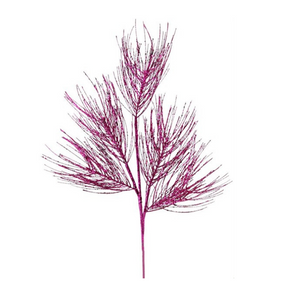 Outfit your Winter decor with this glittered pine spray to bring a shining element! This spray features long pine branches and needles, covered in fuchsia glitter, making this spray a must-have in any holiday wreath! This spray will pair well with Winter-themed decor just as well as with fitting floral enhancements! Consider using this spray in a wreath finished with decorative ribbon or ornaments; you may even add a Christmas sign to keep with the theme!
