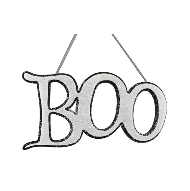 Liven up your display of the undead with this classic foam glitter Boo sign! Whether it be a ghost, witch, monster or other mischevious figure, anyone can say Boo if they're scary enough! So up the scare-factor on your own Halloween display by hanging this Boo sign around your other creepy decorations!