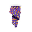 In need of a spooky sweet treat for design inspiration? Then start decorating with this marvelous mini candy corn on pongee fabric ribbon! Featuring a sewn wired edge, along with dozens of candy corns atop a purple base, this ribbon will fit in perfectly with any Halloween-themed display you can imagine!