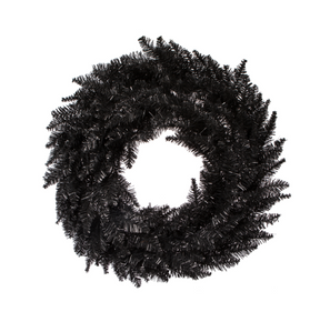 Vickerman 24" Black Fir Artificial Christmas Wreath with 210 PVC tips. Incorporate bright and modern holiday décor into your space with this beautiful wreath. A great accent for your front door or mantle, this wreath comes Unlit, features traditional PVC tips, giving a lush, full look, and can be customized with your favorite lights, ornaments, ribbons, or Holiday picks. The wreath measures 24" across the diameter from the end of one tip to another.