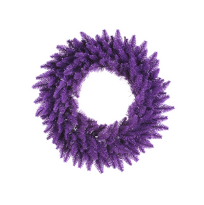Vickerman 24" Purple Fir Artificial Christmas Wreath with 210 PVC tips. Incorporate bright and modern holiday décor into your space with this beautiful wreath. A great accent for your front door or mantle, this wreath comes Unlit, features traditional PVC tips, giving a lush, full look, and can be customized with your favorite lights, ornaments, ribbons, or Holiday picks. The wreath measures 24" across the diameter from the end of one tip to another.