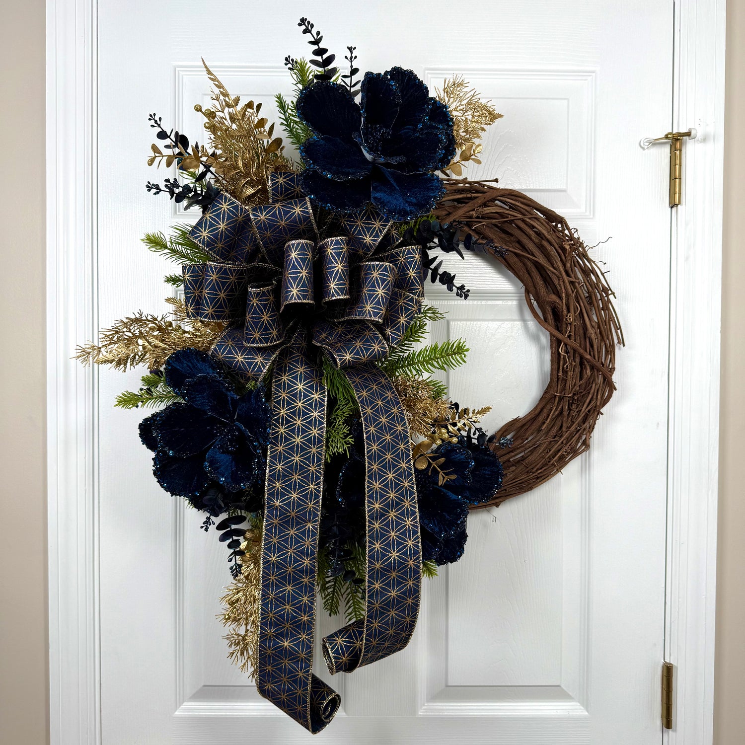 X3 MTX66900 24" Velvet Glitter Bead Edge Magnolia Stem (Midnight Blue) $5.99