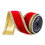 This 2.5" x 5-yard ribbon features rich red velvet accented with a sparkling diamond-edged gold backing, perfect for adding elegant warmth to your winter projects and decorations.