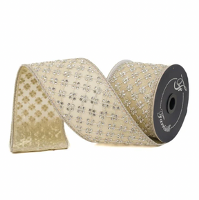 This elegant 3" x 5-yard gold lattice ribbon features a shimmering diamond pattern, perfect for adding a touch of sophistication to your seasonal décor or gift wrapping.