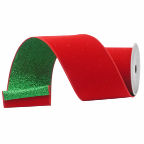Vibrant, flocked velvet with a glittery, contrasting back fabric. Ribbon is constructed with thick, wired edge and is made with a secondary fabric to provide shape and structure.
