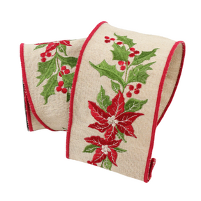 4" x 5YD Linen Poinsettia Holly Farrisilk
