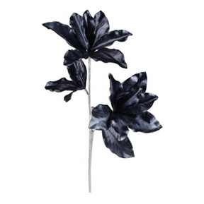Pair this charming magnolia leaf spray with your blooming floral display for a lovely finishing touch! This spray contains striking smoke blue petals, along with buds and shiny bits throughout, making this spray a perfect enhancement for a wreath display, or garden! Pair this spray with other blooming floral pieces or picks in a variety of vivid colors!
