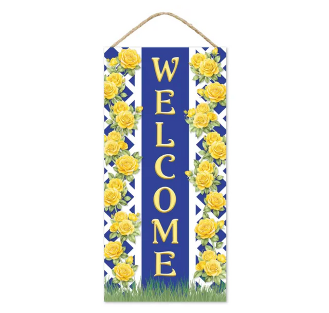 Welcome your guests with this charming sign. Made from durable MDF and measuring 12.5"H x 6"L, this sign features a beautiful rose trellis design that adds a touch of rustic elegance to any entryway. The included jute hanger makes it easy to display on a door, wall, or porch.