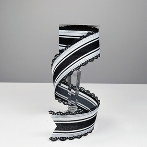 2.5"X10yd NSD Exclusive Black Farmhouse Stripe Black Lace