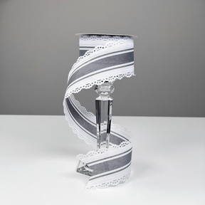 2.5"X10yd NSD Exclusive Grey Farmhouse Stripe White Lace