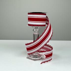 2.5"X10yd NSD Exclusive Red Farmhouse Stripe Red Lace