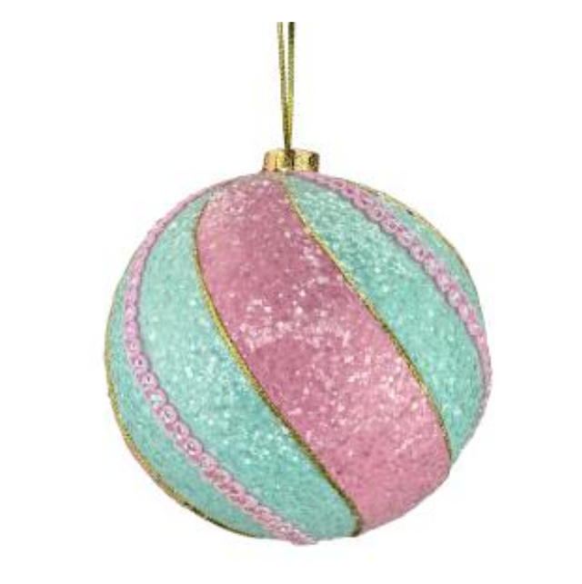 Add a charming touch to your holiday decor with this 6.5" pastel pink and blue ornament ball. Its graceful swirl design brings subtle elegance and a soft splash of color to any tree or wreath.