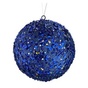Brighten your holiday decor with this 6" blue sequin glitter ornament ball. Its sparkling finish adds elegant shimmer to any tree or festive setting.