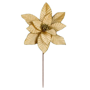 Add this marvelous poinsettia stem to your floral decor to bring an elegant look! This poinsettia features detailed gold petals, or bracts, making this stem an attractive addition to any floral display! Add this poinsettia to other blooming sprays, picks or bushes to get the most from its good looks! Use this stem in a wreath display, or a decorative planter!