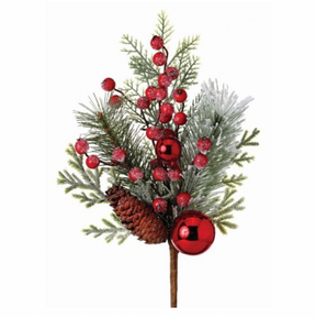 Add a festive touch with this 14" pick featuring red berries, a decorative ball, and pine accents—perfect for holiday wreaths, garlands, or centerpieces.