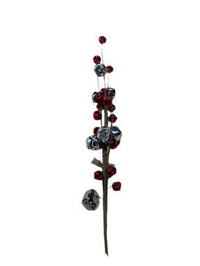 Hang this musical vacuum plated jingle bell spray as part of your Christmas decor to own the sound and look of the season! Featuring wood-like branches and red/shiny emerald jingle bells throughout, this spray will be an excellent addition to a holiday wreath, garland, or even the Christmas tree itself! Pair this spray with other larger bells, as well as shiny or colorful ornaments to finish your jubilant Christmas display!